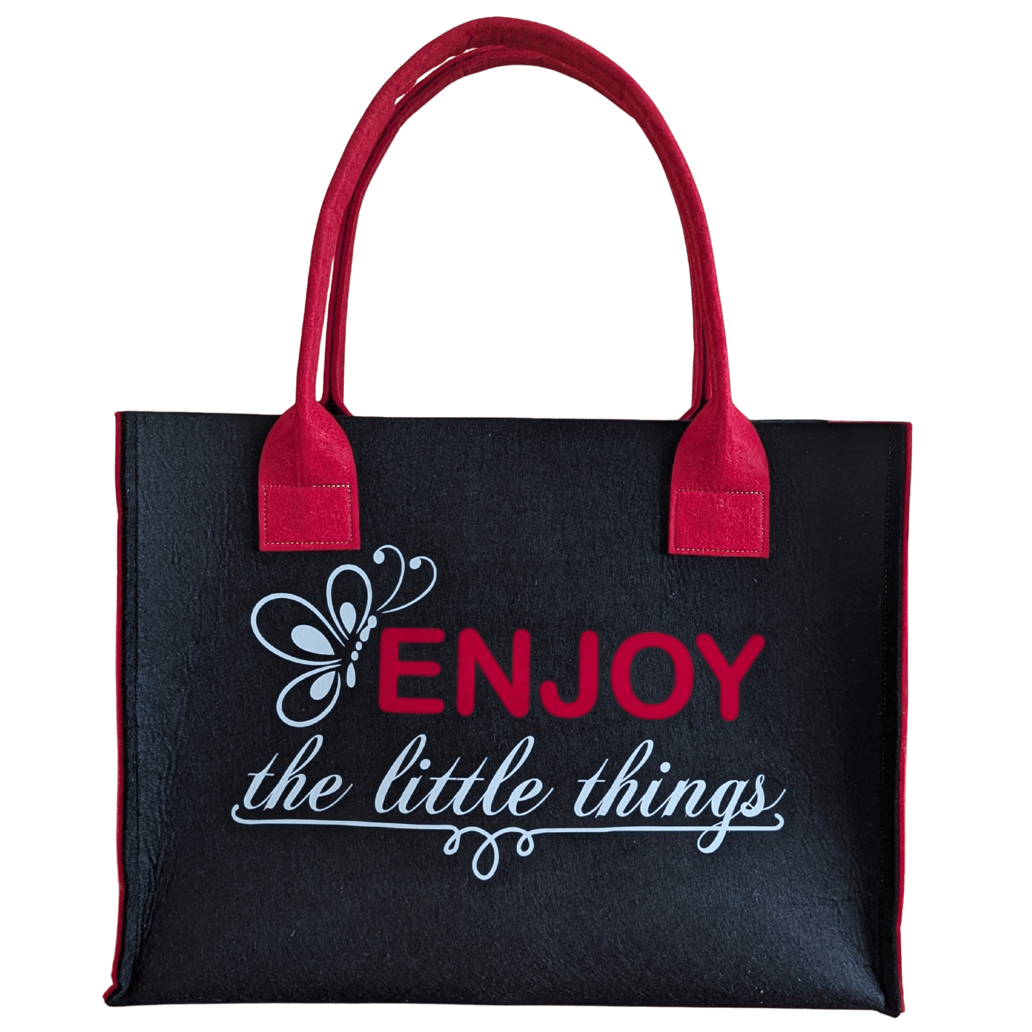 Filz-Tasche mit dem Spruch: „ENJOY the little things“ – wie am Foto ersichtlich. In verschiedenen Farben und Größen erhältlich.