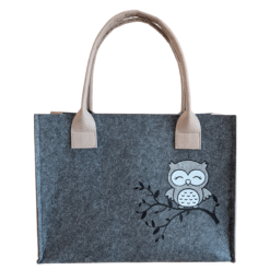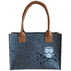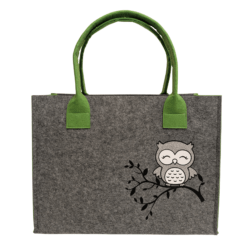Filz-Tasche „Eule auf Ast“ – wie am Foto ersichtlich. In verschiedenen Farben und Größen erhältlich.